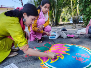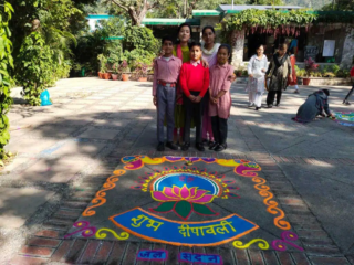 The festival of lights (Diwali) was celebrated at the school by making beautiful Rangolis and the celebrations continued in the evening. The school campus was lit up with diyas made by the students.